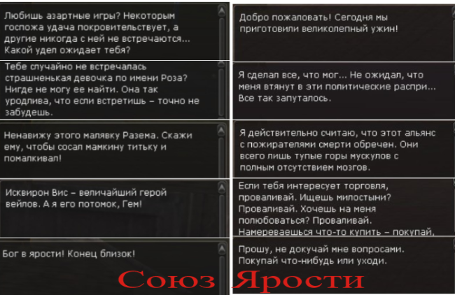 Давайте найдем авторов диалогов, которые будут опубликованы в данной теме и в Группе ВК. За время отведенное на Ивент, найдите 10 НПС с заданным диалогом, сделайте скриншот персонажа и отправьте в личное сообщение GH Фракции: АС [GH]Провокатор - Discord provocateur11.